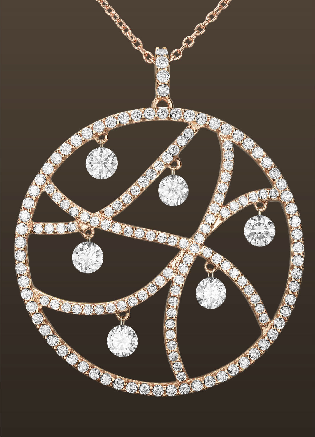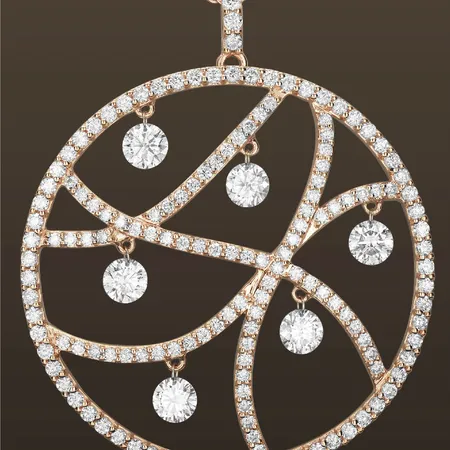 • 18kt rose gold pendant with moving diamonds.