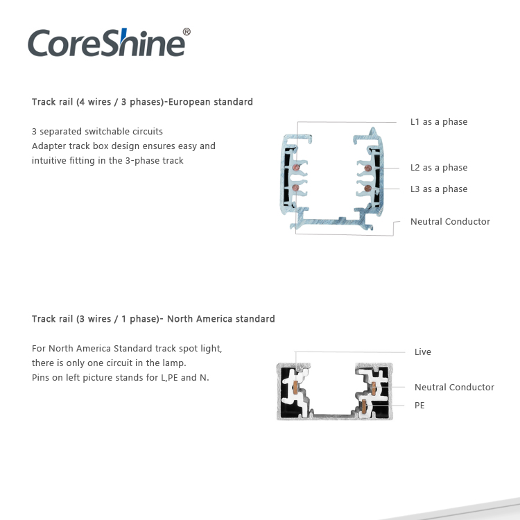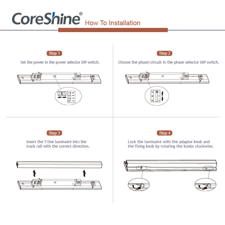 Coreshine T-LINE  track linear is an energy-efficient, low maintenance and easy to install to any track rails in the projects. Suit for Europe Standard and North America Standard.
