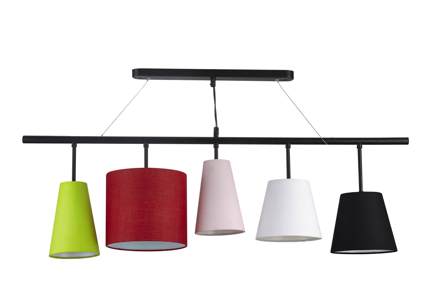 • pendant lamp ,black body+tc fabric shades, height max 120cm, E27 SOCKET &E14 SOCKET .