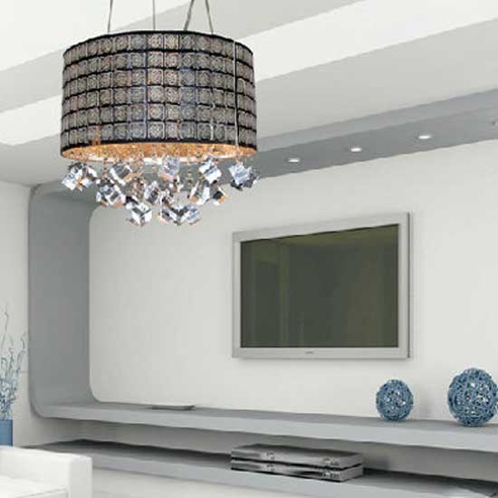 Outlined is a modern pendant lamp that is delicately crafted with stainless steel carving detail. The draping shimmering ornaments add a sense of elegance. This stylish pendant lamp can be made into different shapes such as cylindrical, taper or square.