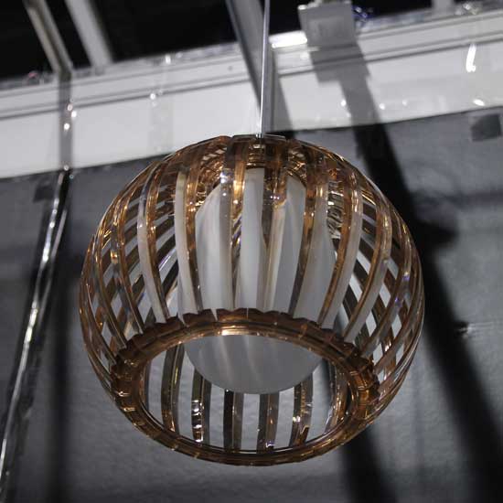 The pictured fluorescent pendant lamp is suspended by a sturdy cord. The pumpkin-shaped lampshade features delicate cutouts for a refined accent. This modish pendant lamp complements your place in a dainty way.