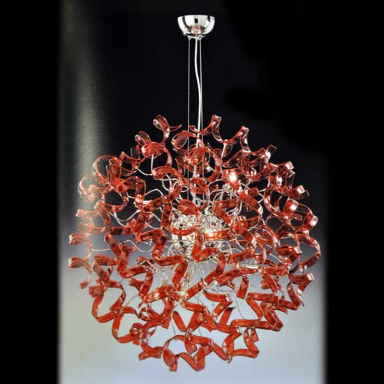 This pendant lamp is composed of plenty of curvy red ribbon-like adornments to create a ball shape, evoking a sense of vogue. It is professionally engineered to deliver bright and even light without flickering. This chic ceiling lamp is an ideal choice to spice up your home decor.