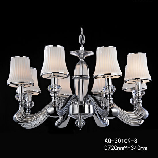 This crystal lamp comes with a majestic and delicate design.Its lamp arms are made up of zinc alloy and chromeplated.This indoor pendant lamp adds extra aristocratic grace.The milk-white finish lampshades present elegance and freshness.