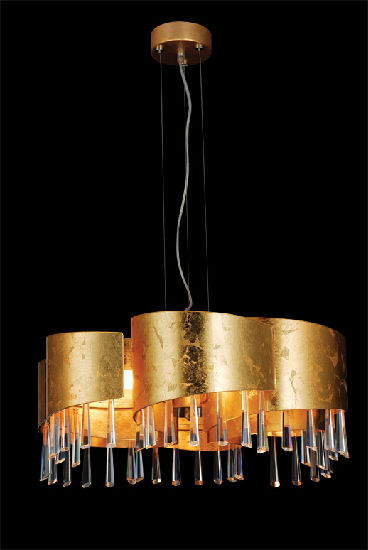 This pendant lamp features an eye-catching golden construction. The lampshade features wave patterns and dangling crystal-like ornaments, which showcase a touch of uniqueness. Decorate your home with this gorgeous pendant lamp.