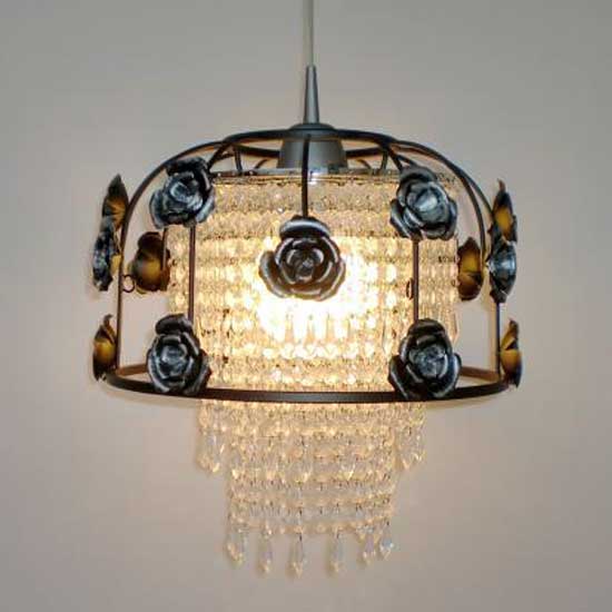 This round pendant lampshade features a metal frame ornamented with floral decorations for added appeal. The transparent draping beads are made of acrylic for durability. This sophisticated pendant lampshade brings an antique touch to your indoor decoration instantly.