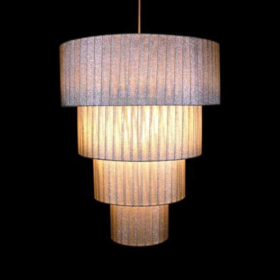 This attractive pendant lampshade features four different sized columns for an artistic touch. It is constructed from pure silk fabric with stripe patterns. This modern pendant lampshade is a popular choice for indoor decoration.