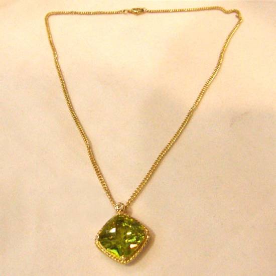 • With a green stone as the pendant