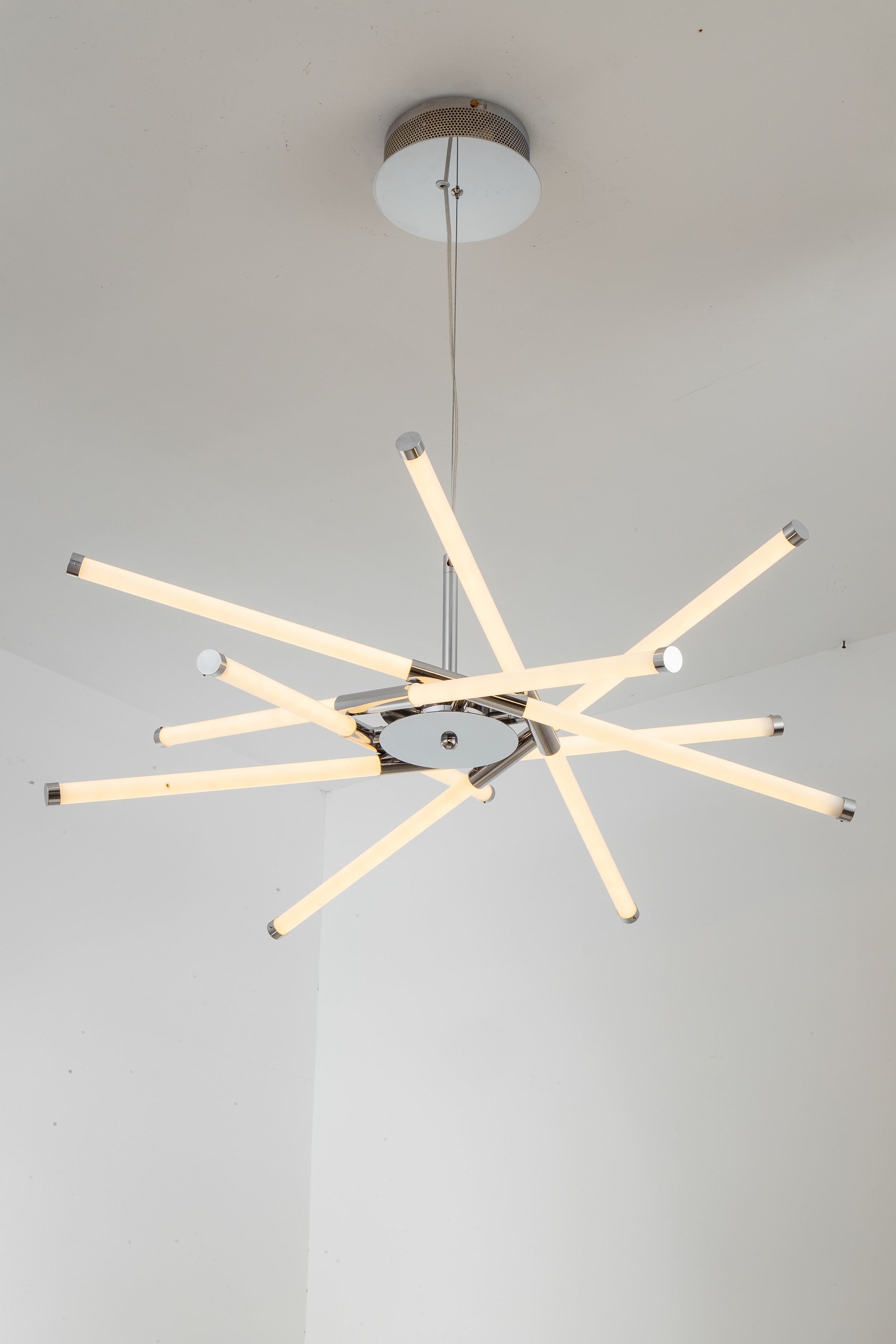 This is a simple, alternative, fashion seeking modern lamp, its material is acrylic + iron art, in the appearance and shape of the main alternative performance techniques, color to white, metal color based, more suitable for simple and modern decorative style.