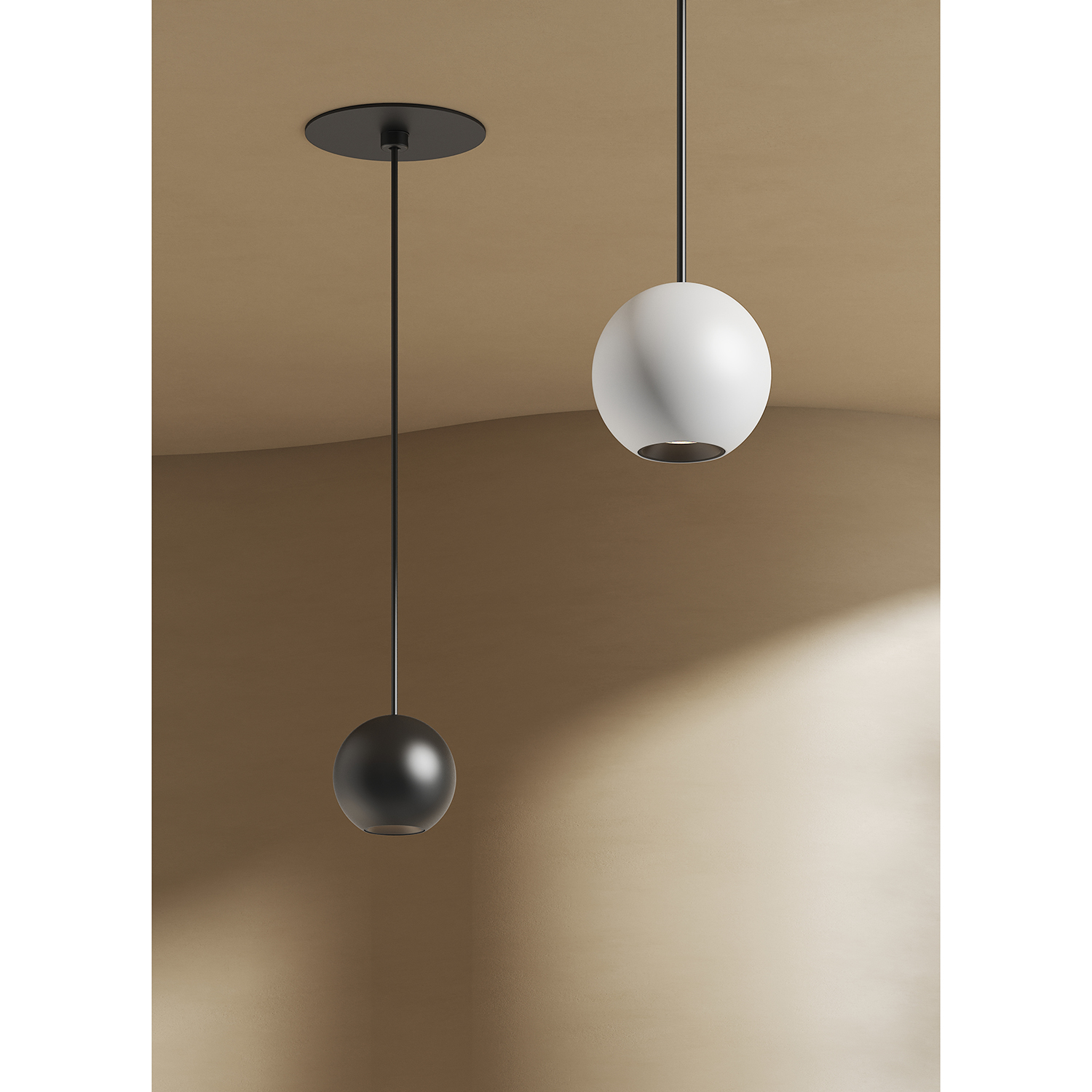 Luno is a compact pendant series shaped by a soft hemisphere and a Ø58mm body.