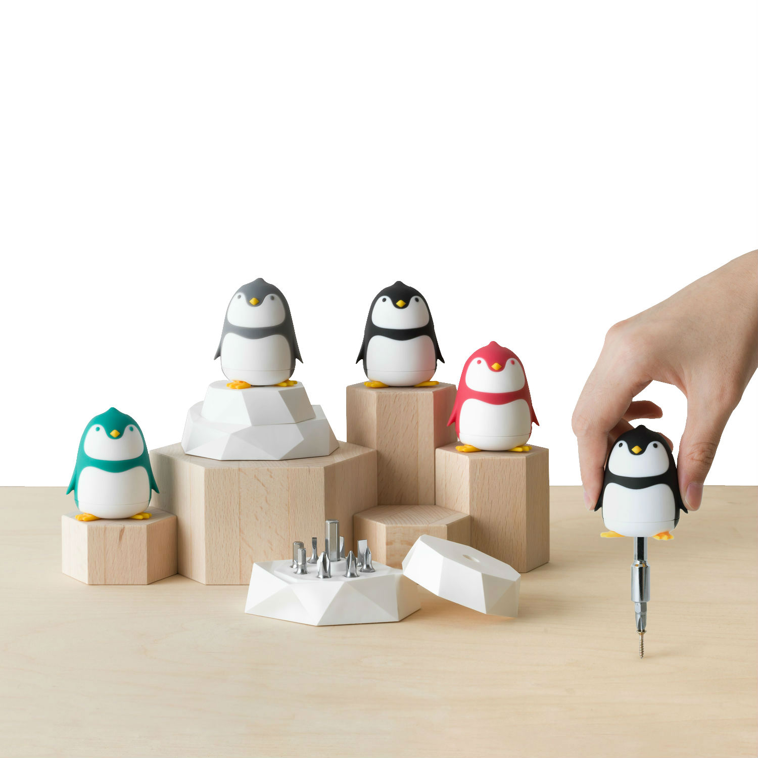- Adorable penguin screwdriver on an ice block base.