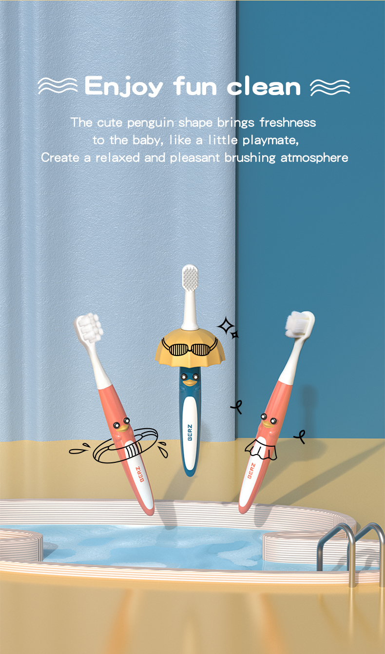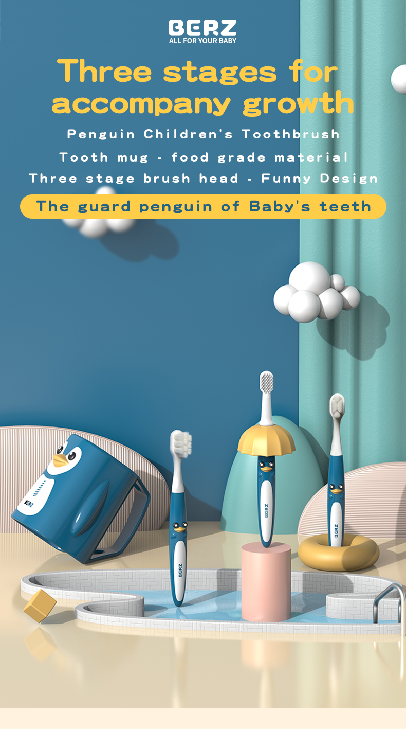 Penguin Toothbrush & Cup Set 3 Brushhead Optional Change As Different Age