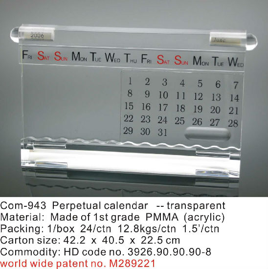 • This is a Perpetual calendar made of 100% first grade acrylic (PMMA) material