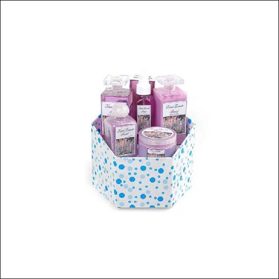 • The elegant toiletry set were packed in a stylish paper gift box with polka dots decorations