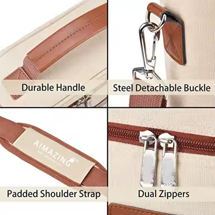 Convenient Handles and Straps: TThe bag is equipped with a durable handle and a padded shoulder strap, presenting comfortable carrying choices. The steel detachable buckle enables easy attachment and detachment of the shoulder strap, allowing you to carry it in the most suitable way, much like a convenient wine carrier.
