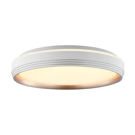 This is a circular ceiling light. The edge of the lamp body is white, with several parallel groove textures, adding a sense of design. The bottom edge emits warm yellow light, which cooperates with the light - emitting area in the center that emits soft light. The overall style is simple and has a sense of hierarchy. It is suitable for installation in home spaces such as living rooms and bedrooms, creating a warm and comfortable lighting atmosphere, and fitting home decoration styles such as modern minimalist and Nordic styles.