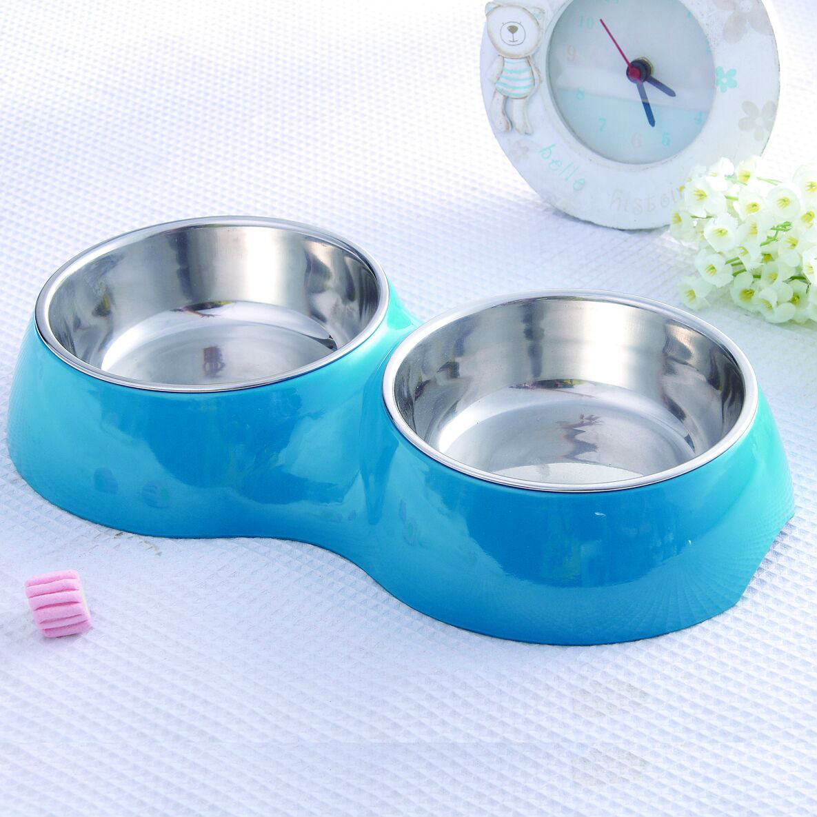 Made of high-quality stainless steel with a unique resin bottom, it's your BEST choice for your pet's feeding time, and the bowls are dishwasher safe.