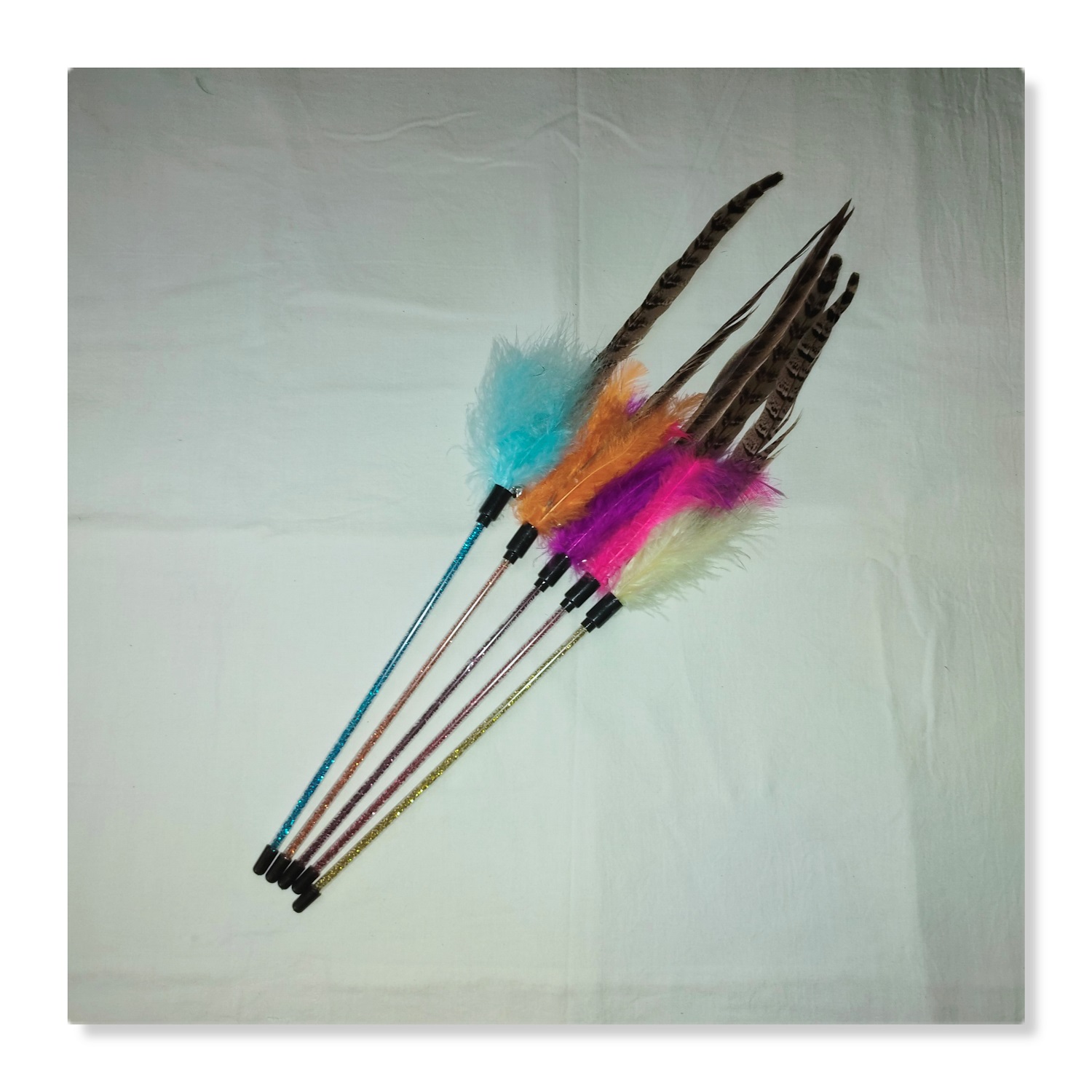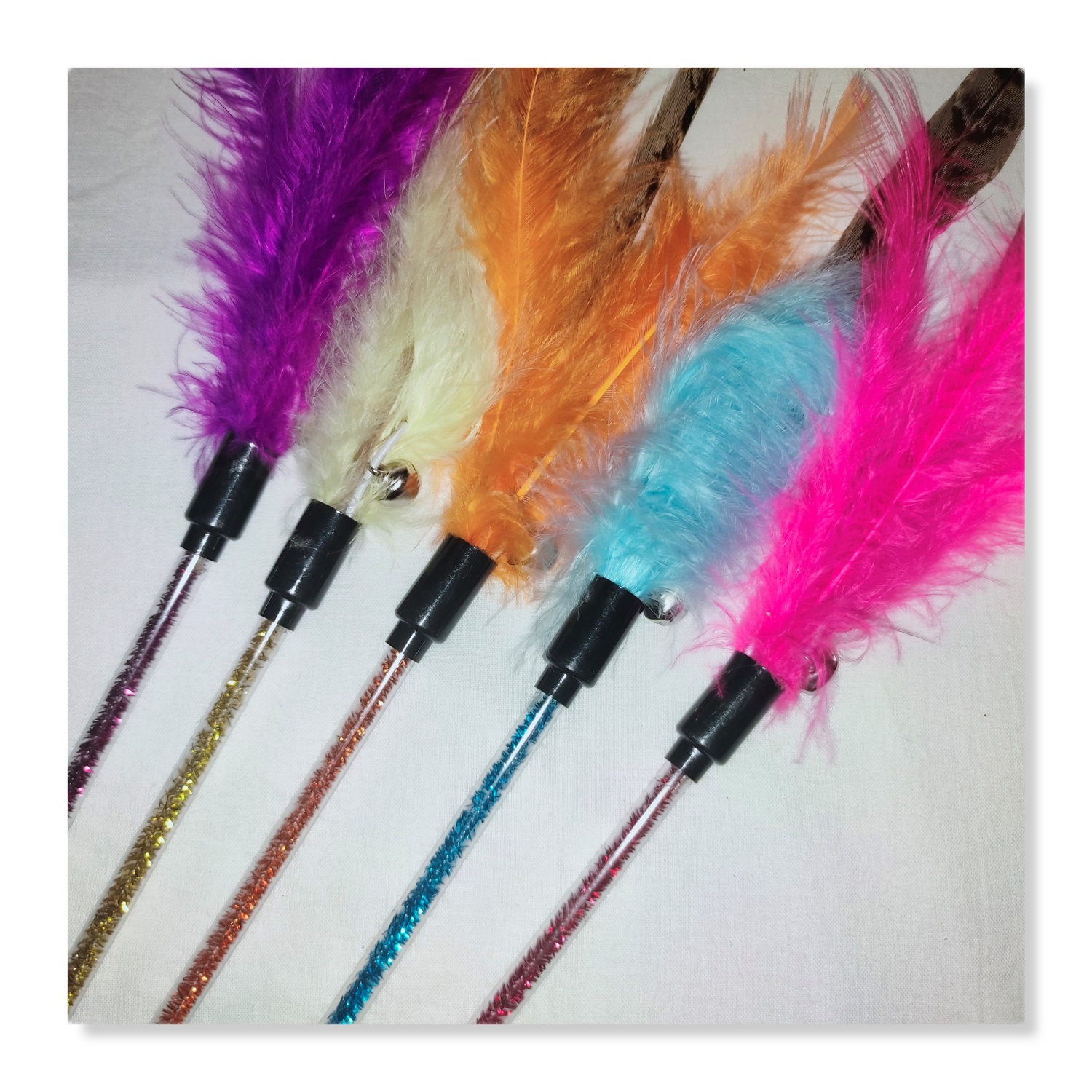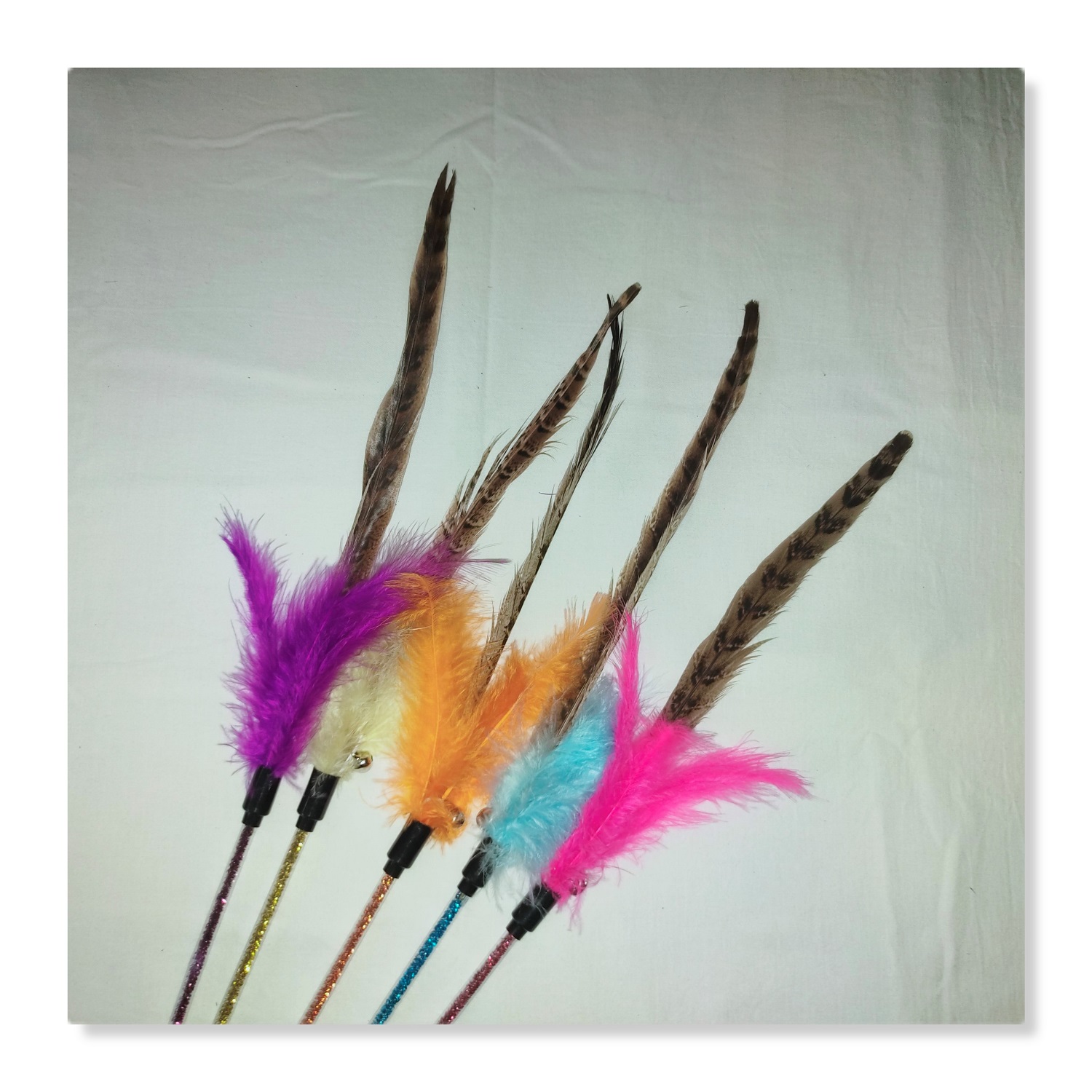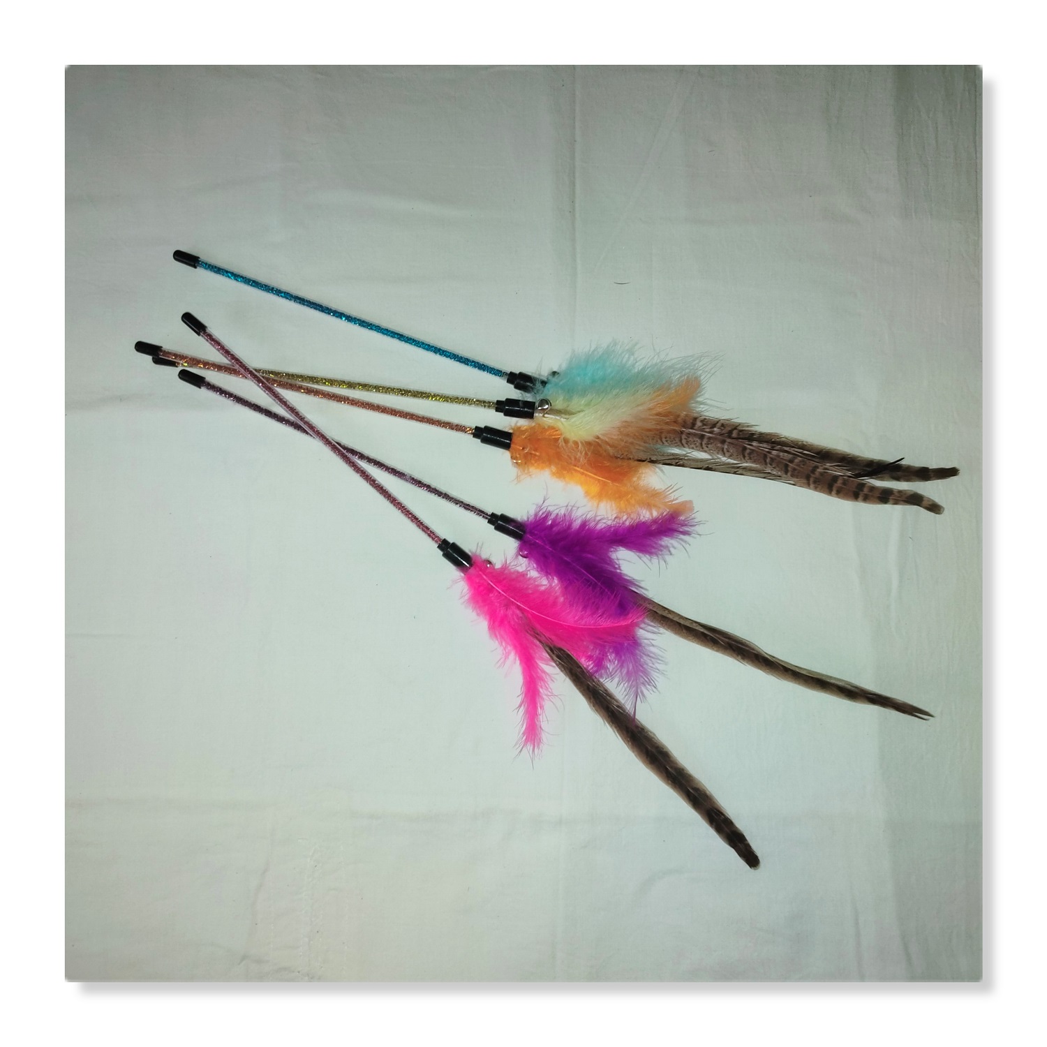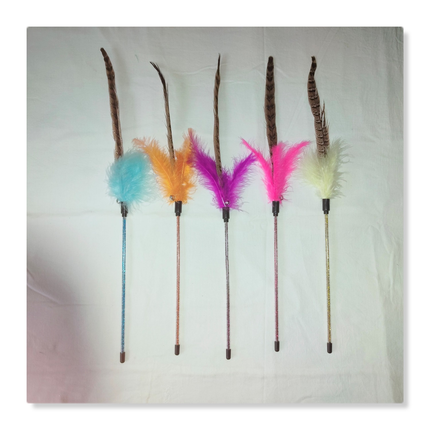 2. Fluff, bell and turkey feather in the middle have a bright color and can crisp bell ringing increases cat curiosity
