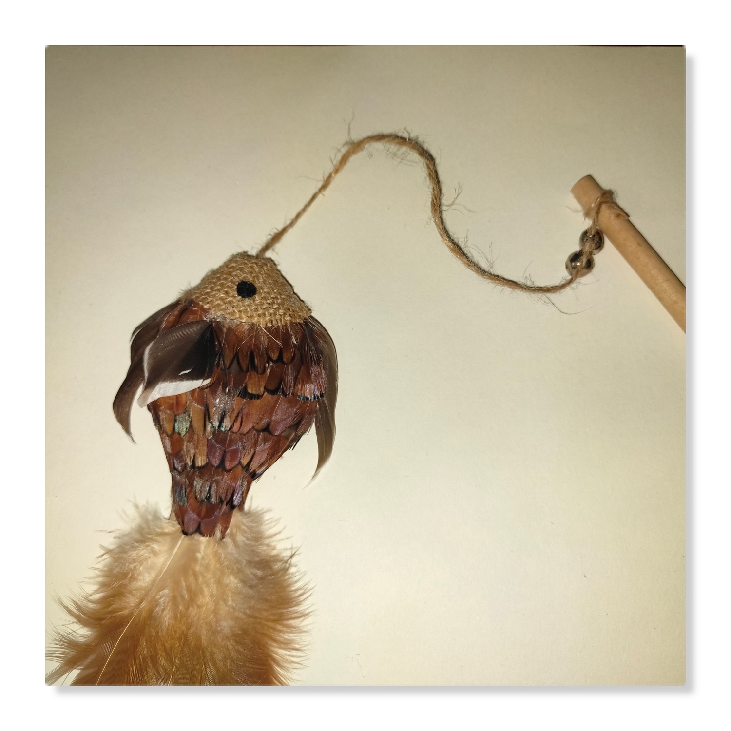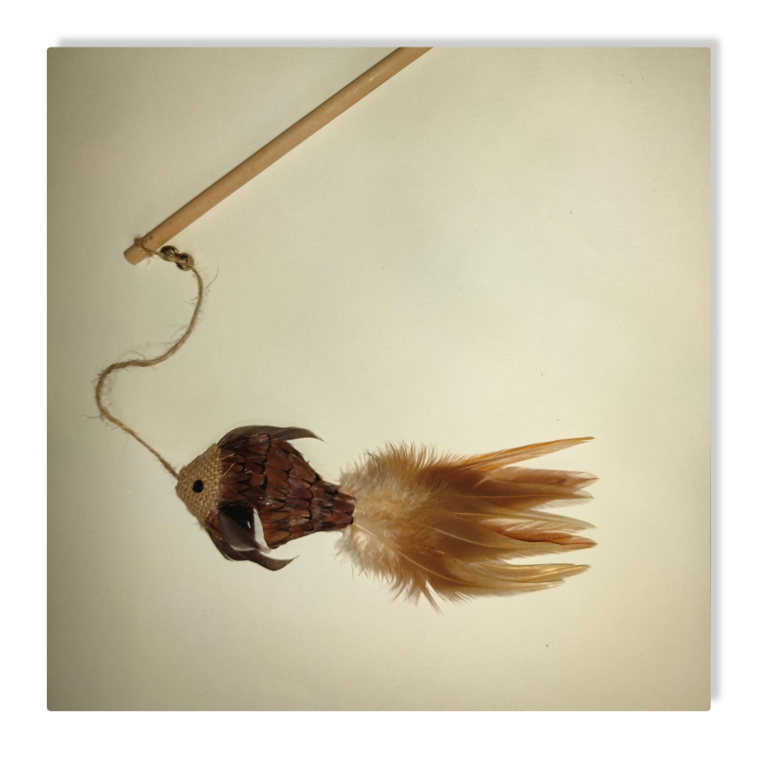 Material: Feather, Hemp rope & Wood. The toy uses the high-quality materials, which are non-toxic without bad smell and harmless for pets.