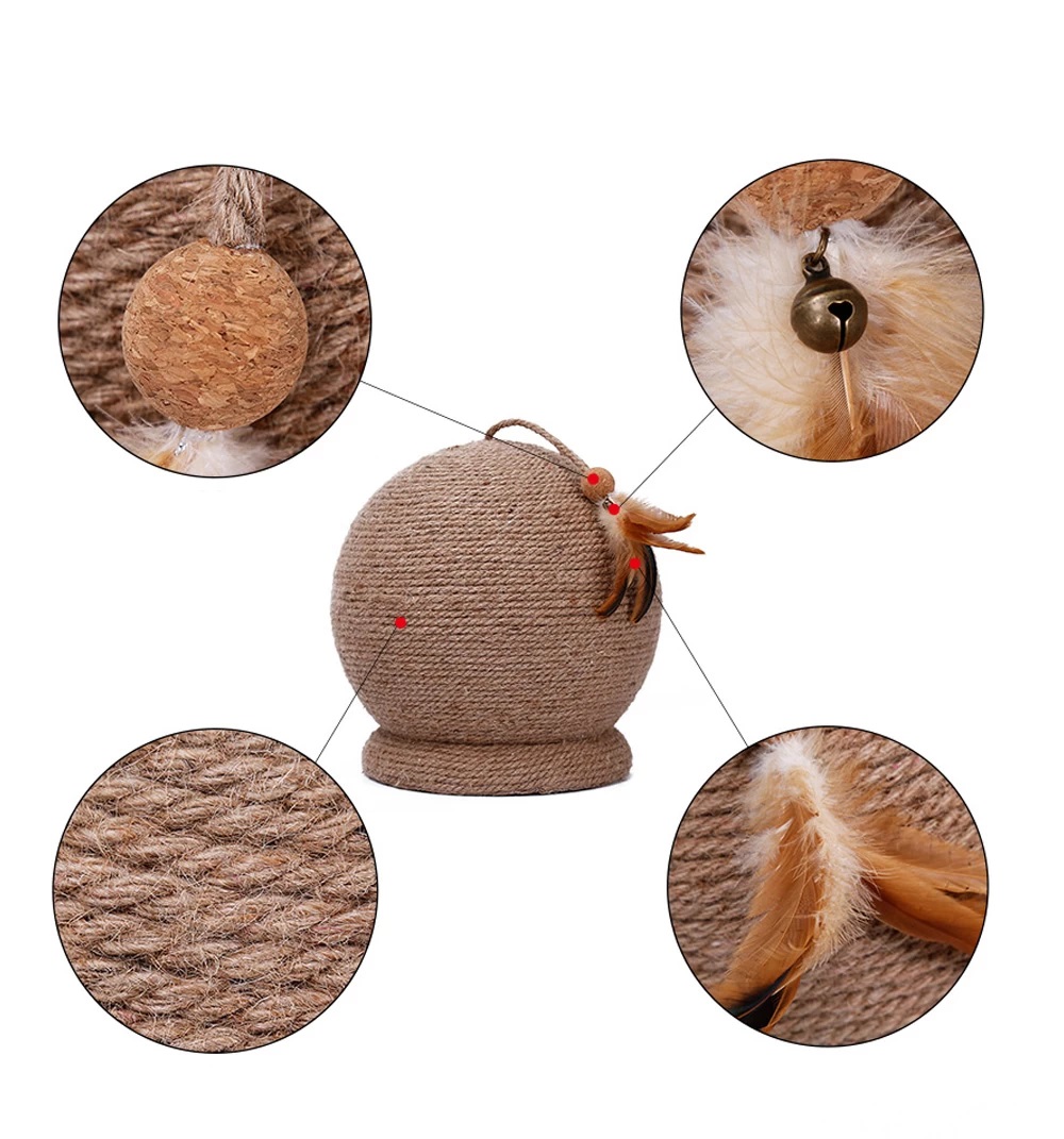 3. With cork ball feather toy, the softwood ball soaked with catnip is the best tooth toy for cats; feathers and bells can increase the interest of cat toys.