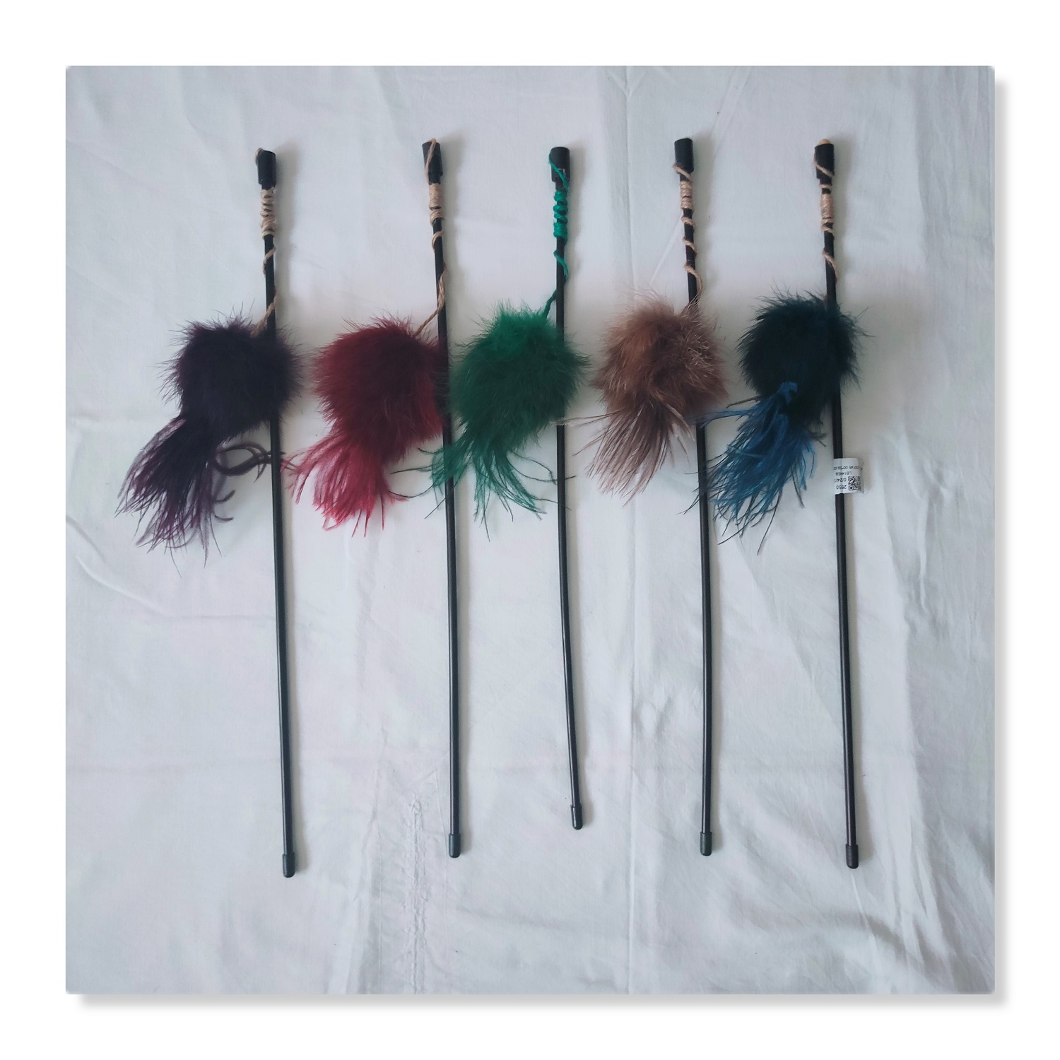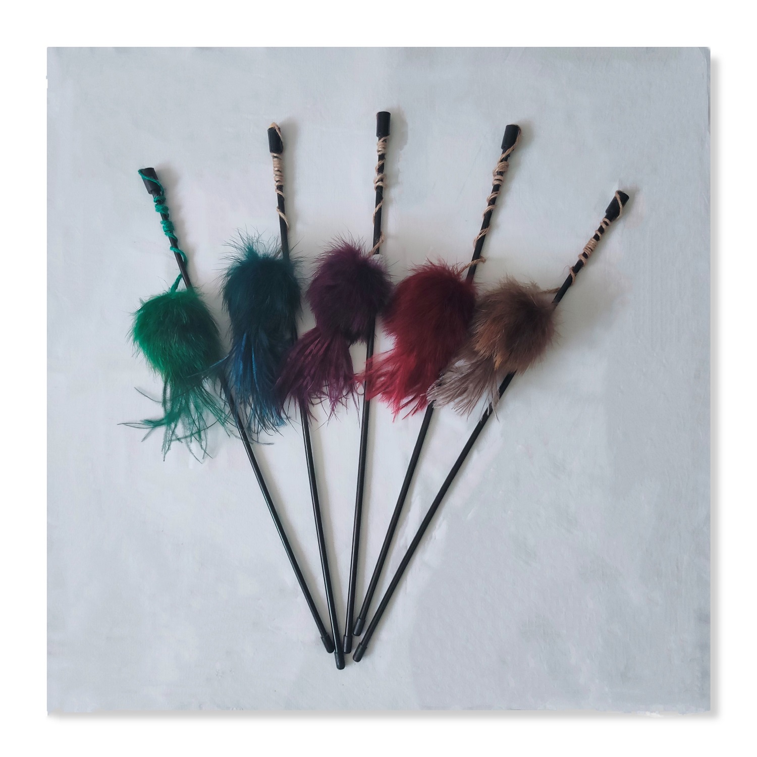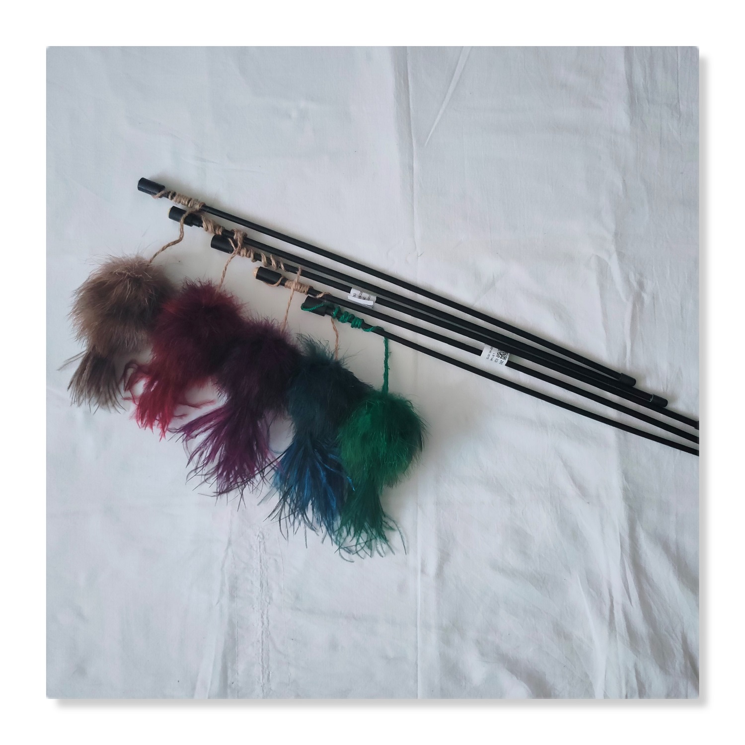 Pet Cat Teaser Toys Interactive Wand with Feather Ball Shape & Tail Cat Toy