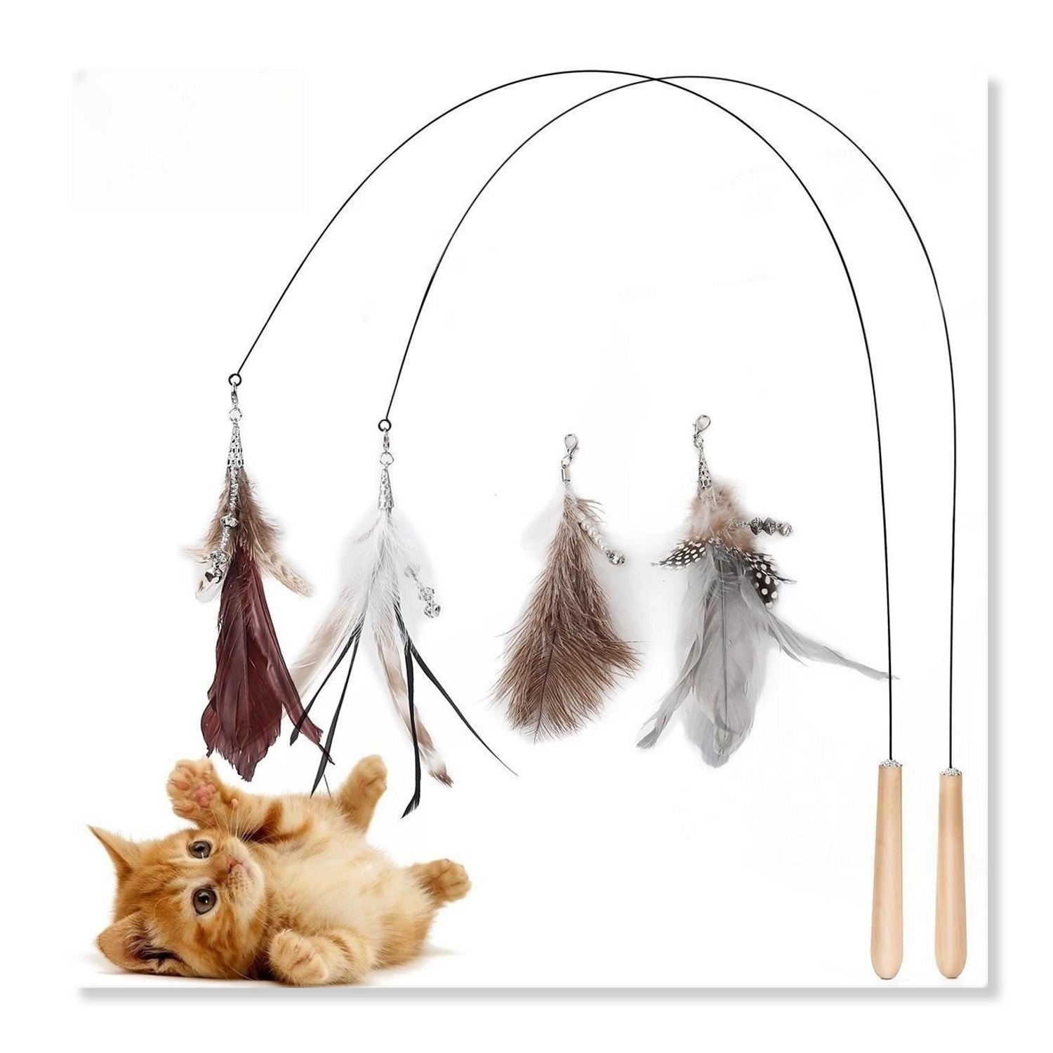 2. Feather toy and bell have a bright color and can crisp bell ringing increases cat curiosity.