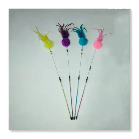 The high-quality plastic rod can withstand the cats' grasp and bite, and the bright feathers can attract the cats' attention.
