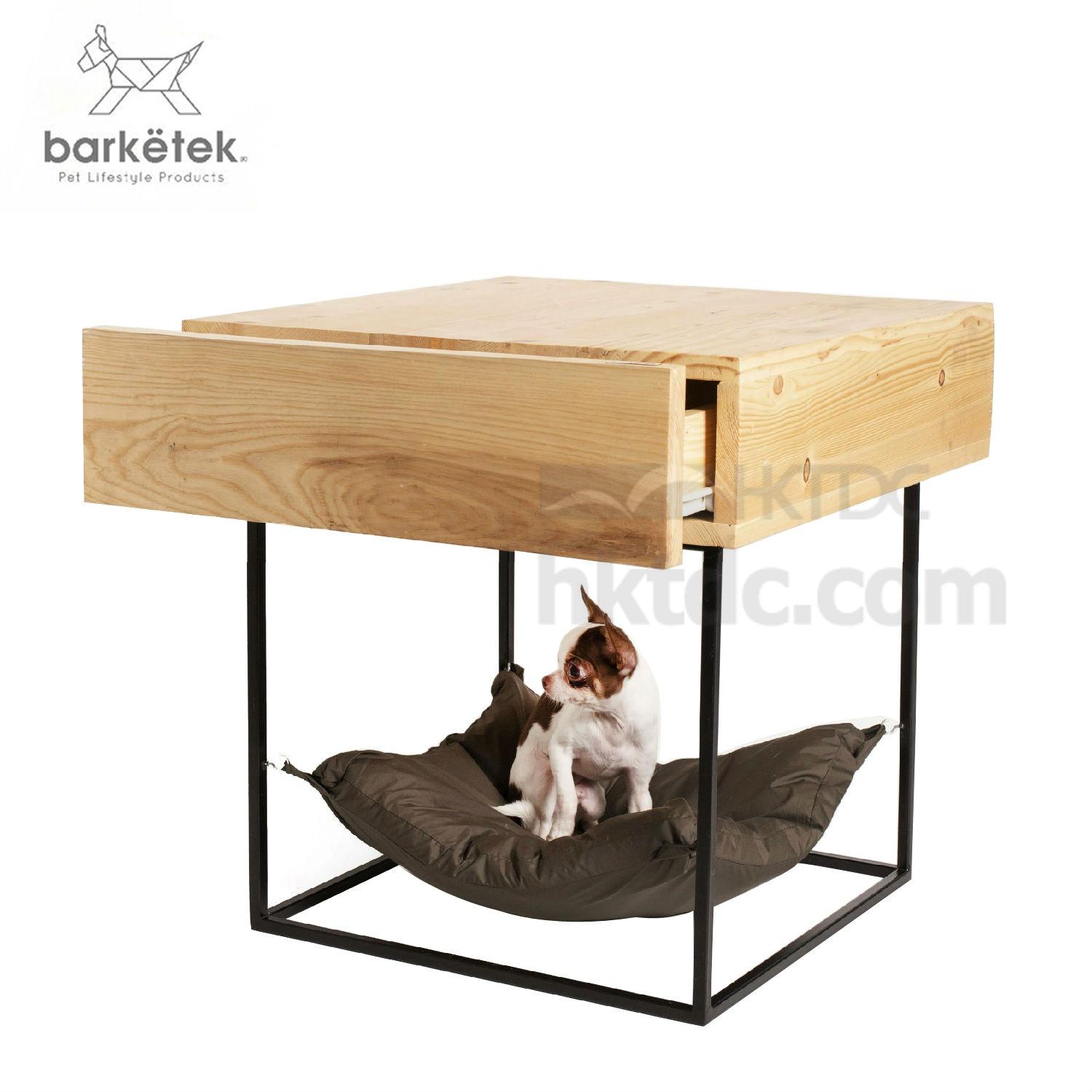 This pet hammock side table combines a sleek simplicity with versatile functionality. It features a concealed storage drawer on top and suspends a pet hammock below to serve the function of two pieces of furniture. This compact piece easily fits right next to your favorite sofa or chair.