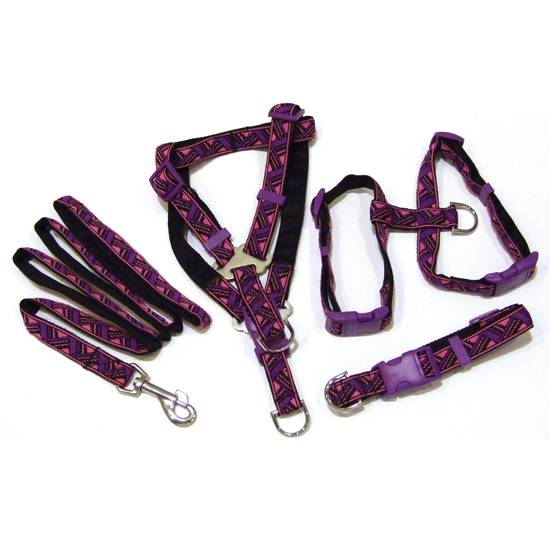 As shown are four pet leashes with flashing lights and decorative line patterns. They are made of polyester, PP and nylon which are environmental friendly materials. The trendy and colourful pet leashes can help to dress up your pets and show your own fashion sense and personal taste.