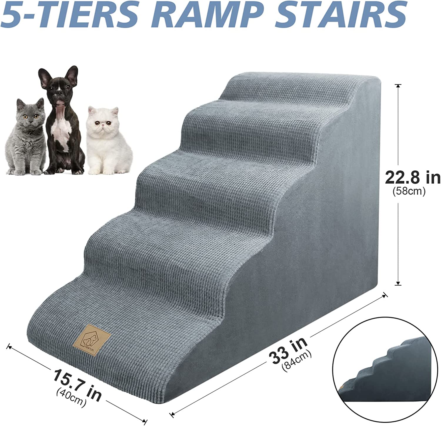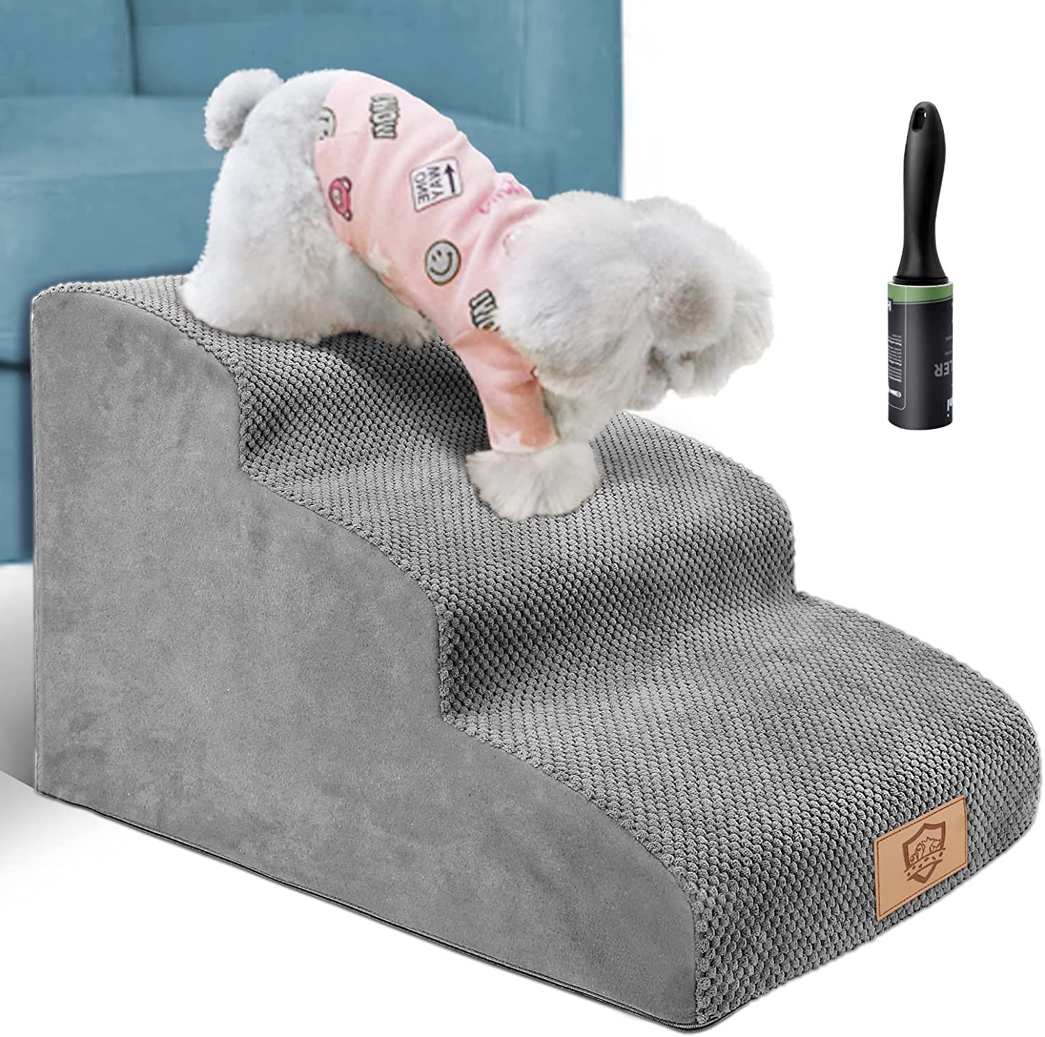 • 【Gentle slope for Senior pets】 Gentle slope with perfect incline, no sharp edges or corners. A more reassuring dog stair taking both best advantage functions from dog ramp and dog step.The sturdy dog ramp simplifies the daily life definitely as a pet owner and a true game changer for dogs and small animals. Protects their legs from accidental injury once chasing or playing at room. Make it ultra easy to walk on! Great for senior or mobility-impaired companions who have arthritis, vision issues.