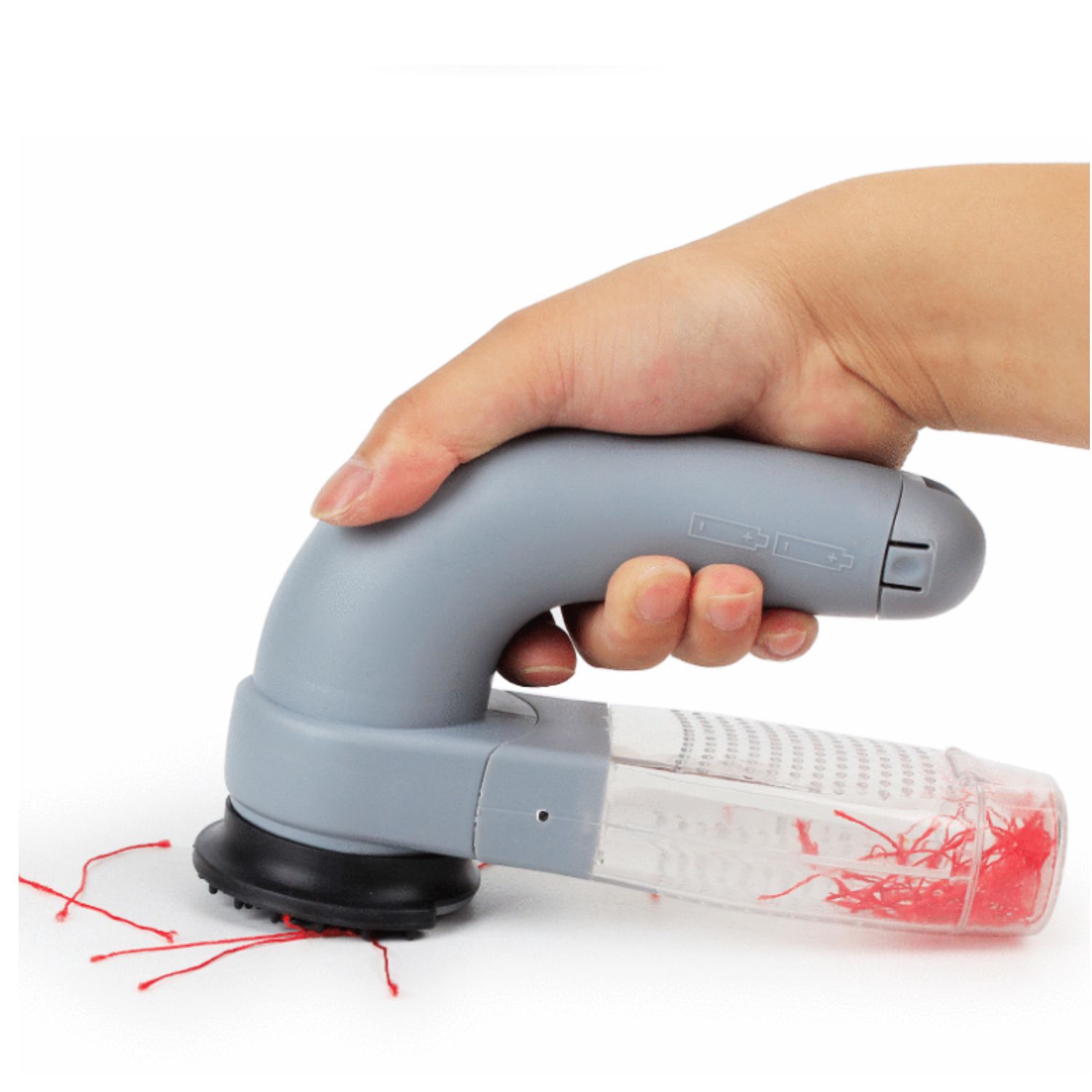 Removes pet hair from clothes and furniture with the included fabric hair removing head. Requires 3 AA batteries (not included). Comes in stock package not retail.