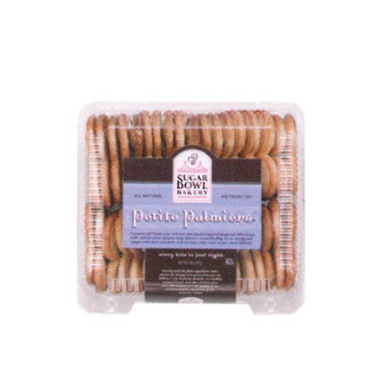 This box of petite palmiers is made with the centuries-old French recipe. It features over three hundred layers of dough and 100% butter and has an irresistibly flaky texture. This delicate pastry goes well with ice cream, whipped cream or just a touch of honey.