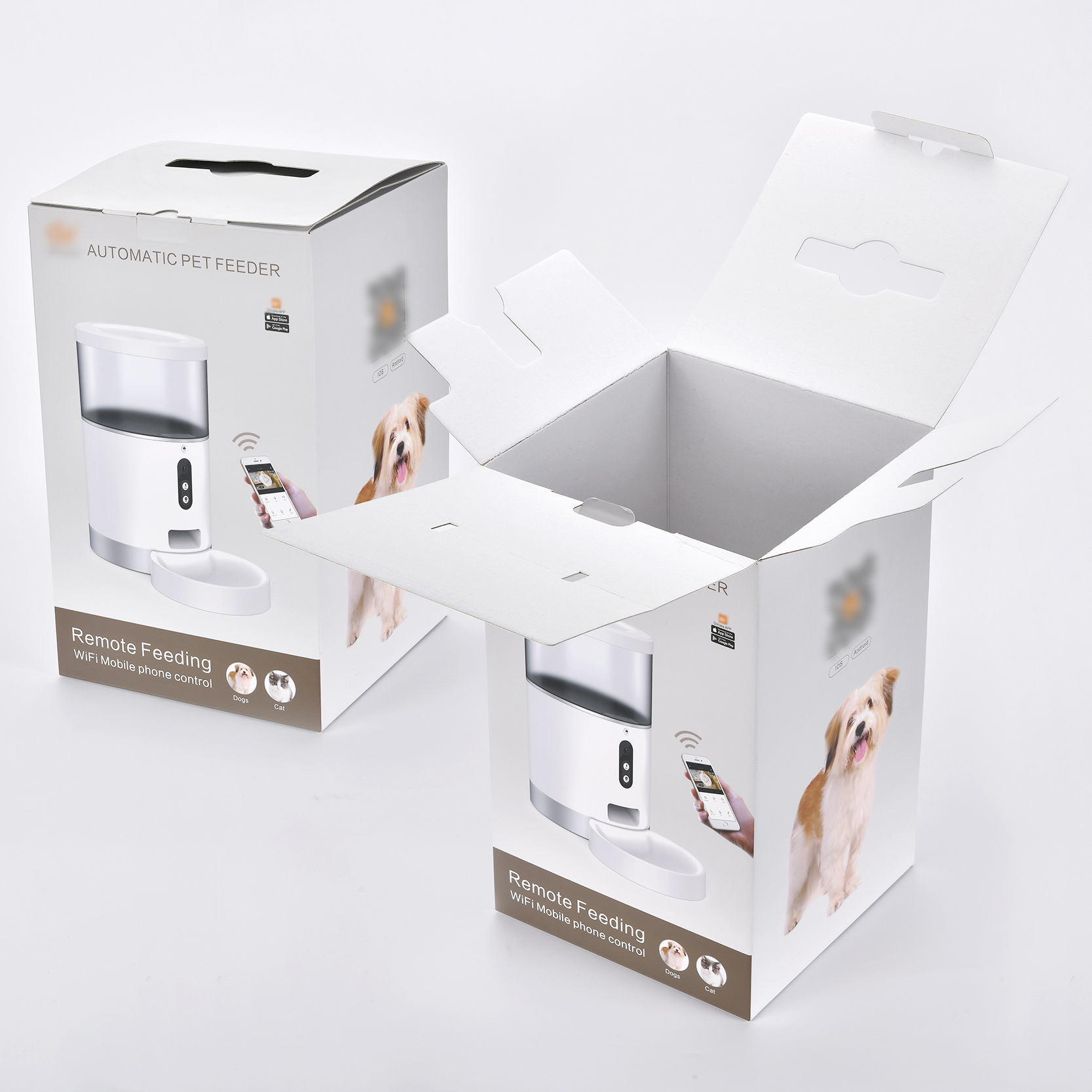 This upgraded corrugated packaging box is professionally designed for pet feeders, featuring a practical flip open lid and durable plastic hanger. Made of thick high-strength corrugated paper, the box delivers outstanding compression resistance and shock absorption, effectively protecting pet feeders from collision, extrusion and dust damage during transportation and storage. The integrated flip lid enables easy opening, closing and repackaging for convenient inspection and packing. Equipped with a sturdy plastic hanger, it supports wall hanging and shelf display, saving storage space. Adopting odorless, Eco-friendly and safe materials compliant with pet product standards, it allows custom logo and pattern printing, perfect for shipping, retail display and daily storage of pet feeder products.
