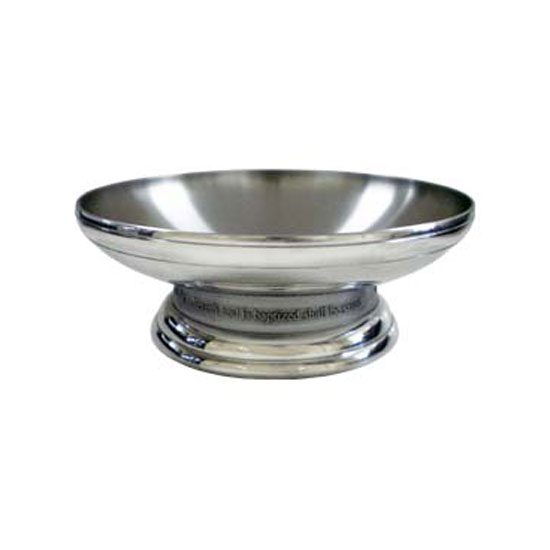 This baptism bowl comes with a stylish and elegant design. It is made of quality pewter for a long service life. This pewter baptism bowl is finely crafted with a high-gloss finish.