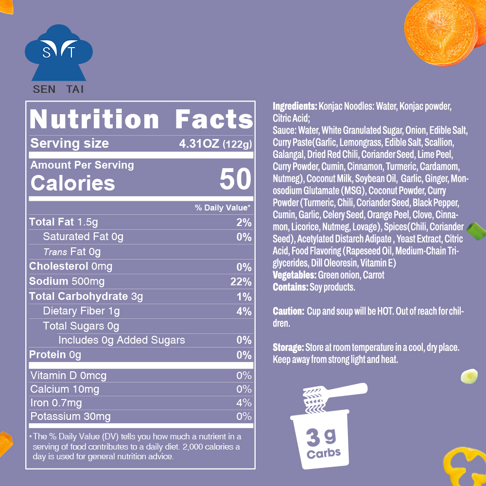 Ingredients: Konjac Noodles: Water, Konjac powder, Citric Acid;