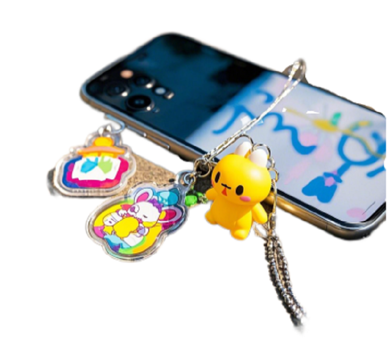 This phone accessory showcases an adorable design with multiple charming pendants. Featuring a vivid yellow cartoon character and colorful, intricately designed charms, it adds a playful, trendy flair to your phone. Crafted from durable materials, the pendants ensure both visual appeal and longevity. Easily attachable to your phone, they serve as delightful decorations, highlighting personal style. Ideal for daily use or as a lovely gift, this accessory merges functionality with cuteness, making your device uniquely eye-catching.