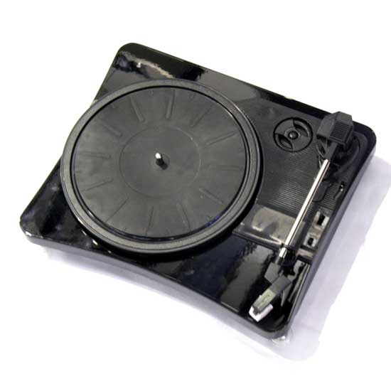 This modern phonograph comes with a USB port, featuring the auto-off function. This phonograph delicately holds the black plastic disc, delivering songs in a classic vintage style. This phonograph goes with a handy portable design.