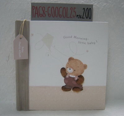 An adorable cartoon bear is printed on this baby photo album, emphasizing a sense of loveliness. Embossed striped trimming adorns the bookbound to express the daintiness of the album. It holds 200 photos with slip-in pockets for extra convenience.