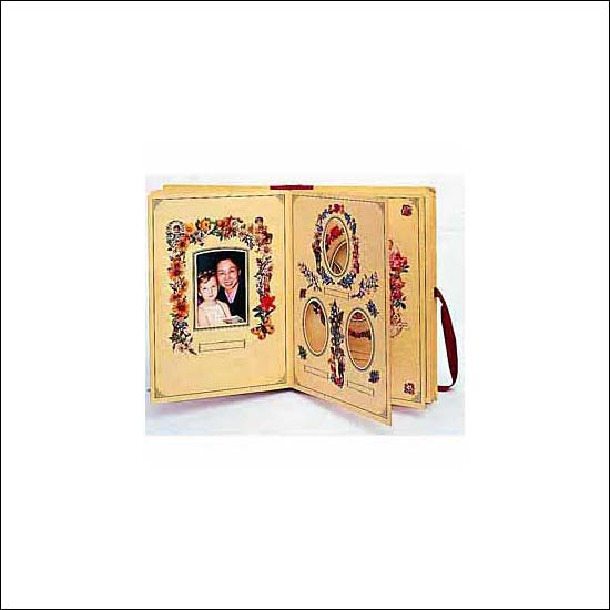 Capture your precious moment with this glamorous picture album. It accents a meticulous design with different frame shapes on each page, surrounding by fancy floral drawings in various styles. By using topnotch artpaper and matching with a ribbon tie-up, you are able to keep this ablum from years to years.