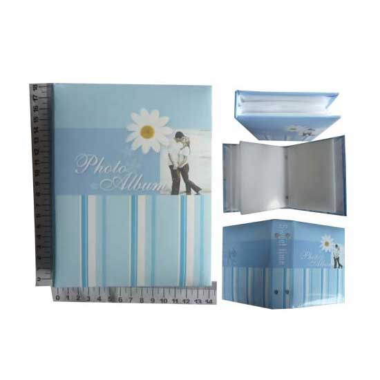 This pretty photo album features a cover showing a kissing couple, giving a touch of warmth. Decorated with a white chrysanthemum and blue-and-white stripe patterns, the photo album displays a feeling of peace. With plastic photo sleeves, the photos can be kept in the best conditions.