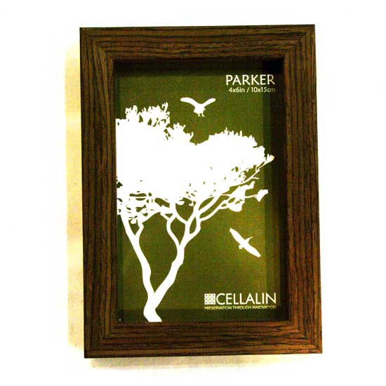 This photo frame comes in portrait orientation. The frame is adorned with natural wood-grain patterns. This photo frame makes a pleasant desk decoration.