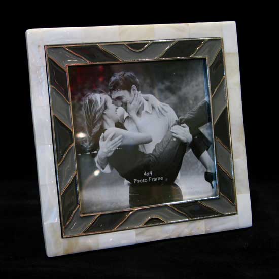 This photo frame boasts a unique square shape. The edges are embellished with elegant nacre bricks. The inner frame is painted with glossy colors. Keep your memorable moments with this graceful photo frame.