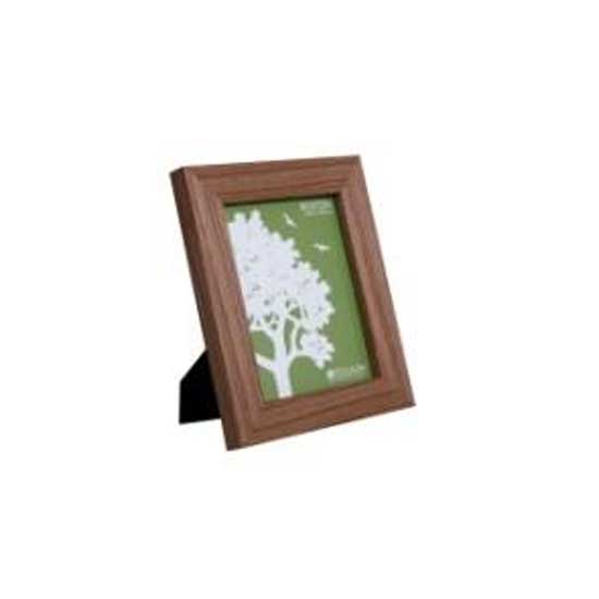 As shown is a photo frame fashioned into a rectangular shape. This piece is made without wood, yet it showcases a lifelike wooden appearance. The materials used are also environmentally-friendly.