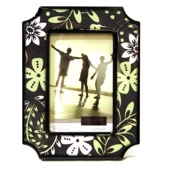 The exquisite picture frame features a black boarder accentuated by green and white floral motifs. It is made with top-quality PP material for durable use. With a fashionable clear design, this picture frame will attract as much attention as the picture inside it.