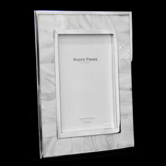This exquisite photo frame features a pearl-colored bolder. The well-designed piece brings a unique touch to your tasteful room decor. The metal frame is suitable for holding portrait photos.