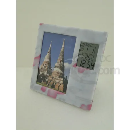 This is a photo frame clock with an ultra-slim and compact design. It not only allows you to display your memorable photo but also tells you the time precisely. The colorful floral patterns add a touch of style to the whole piece.
