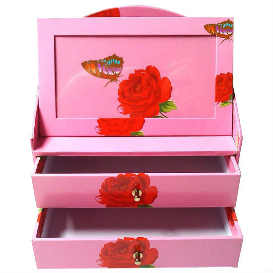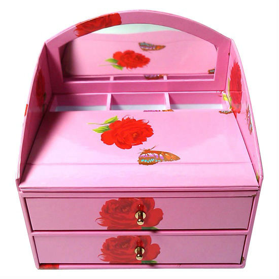 This photo holder case has a mirror for convenient usage. The two drawers at the bottom come with golden knobs for easy opening. With a photo holder on top, you can show your favorite photos and stow your jewelry collection.