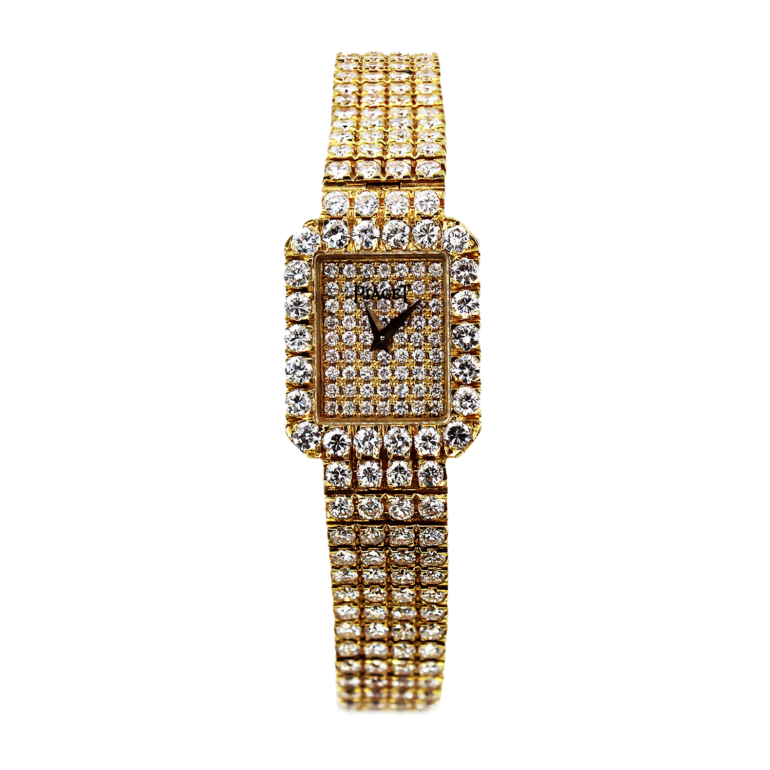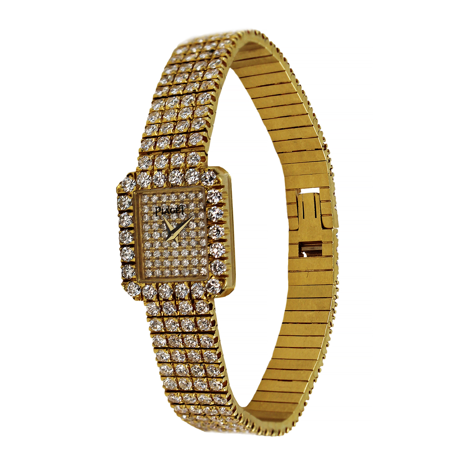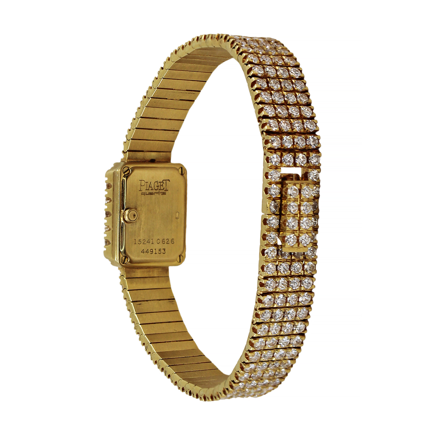 Up for sale is a Piaget 18k Yellow Gold & Pave Diamond Ladies’ Bracelet Watch c. 1990s, Ref 15241 C626.