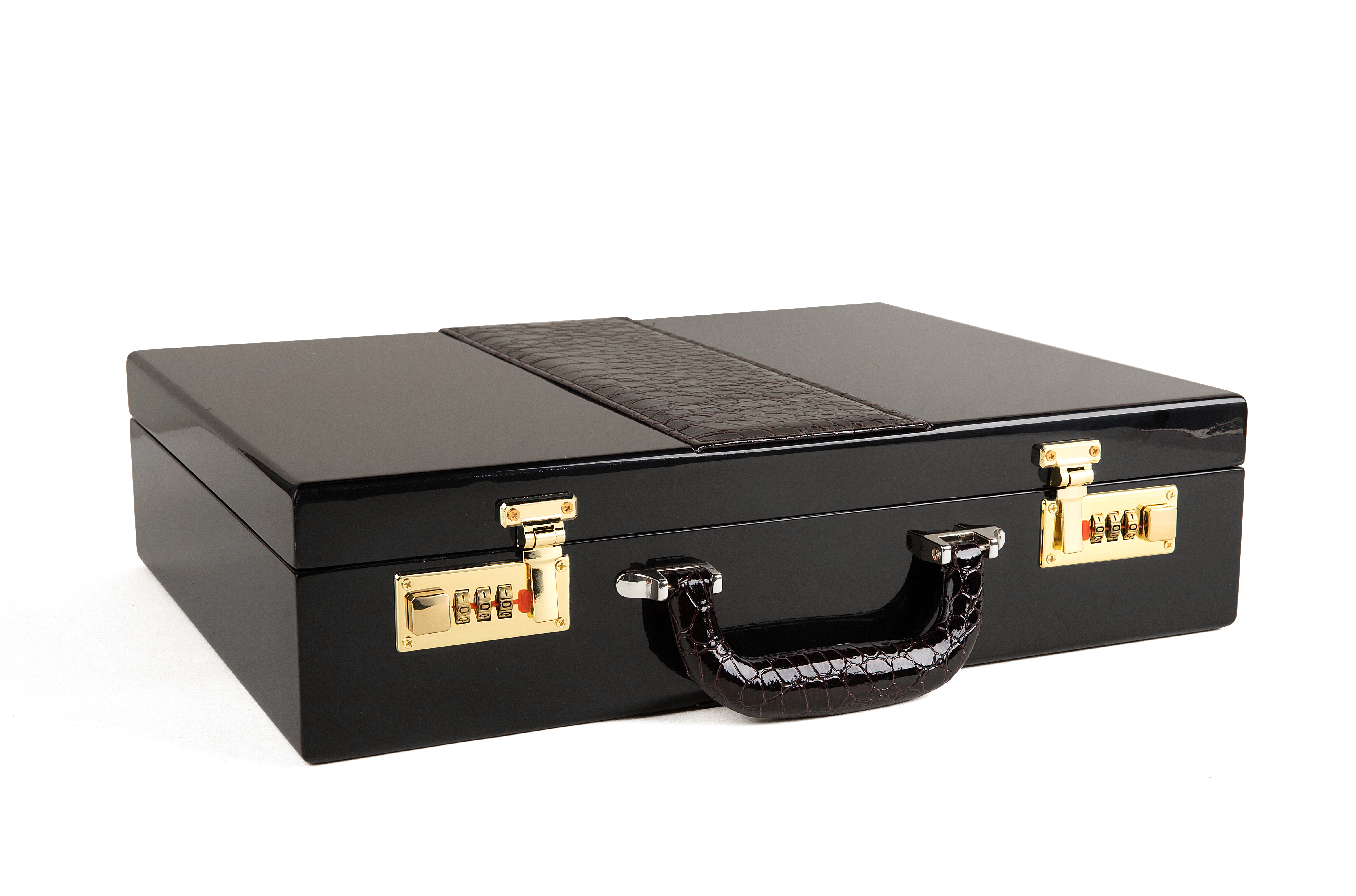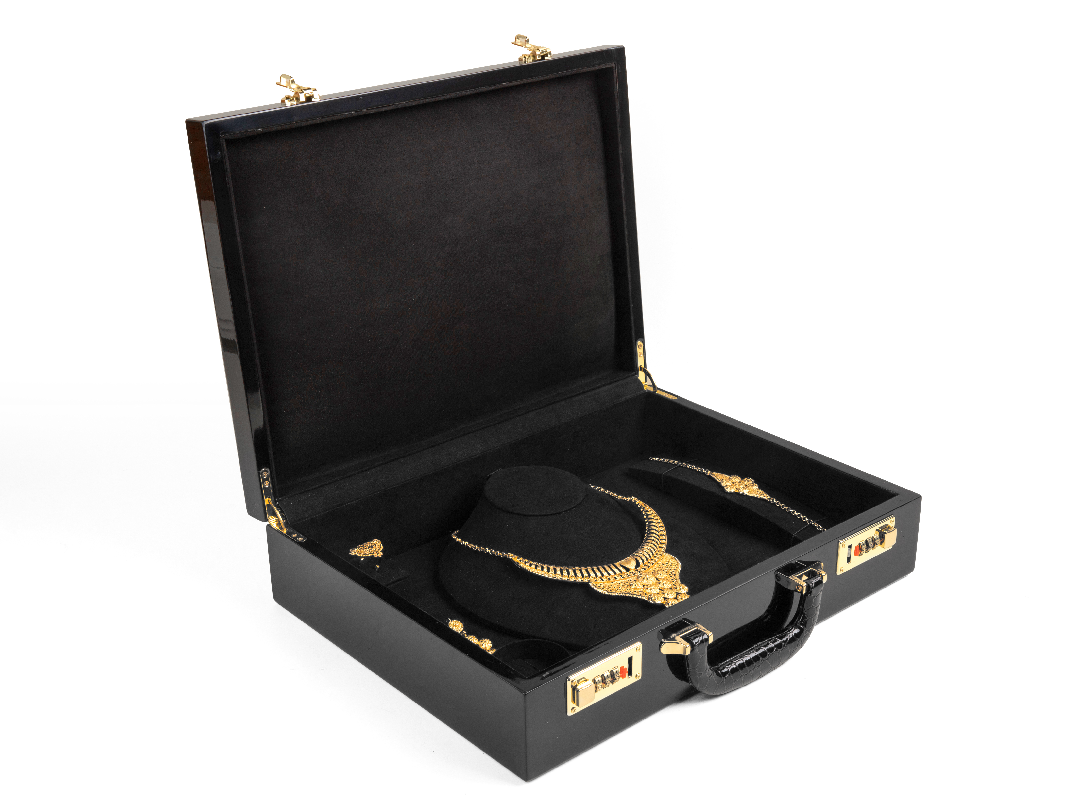 A lacquered jewellery case with a combination lock, designed for storing jewellery and convenient portability. The handles feature imitation crocodile-skin PU leather, exuding luxury and making it ideal for high-end jewellery