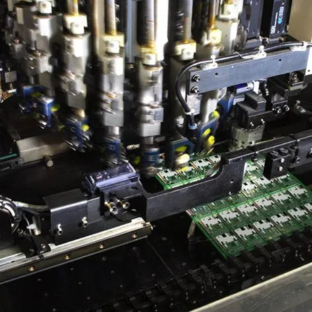 This is a machine for pick & place and bonding technology. This pick & place machine is clip mounted and the minimum size is 0201. It is IC mounted and the fine pitch is in 0.3mm of QFP. The BGA or micro BGA has a diameter of 0.4mm with a 0.8mm pitch. Diameter of the ball is 0.3mm and it comes with a 0.5mm pitch CSP.