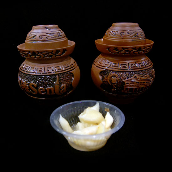 The pickled ginger is stored in an exquisite engraved container made of pottery and ceramic clay. The ginger offers a sour and spicy taste, which is stimulating to the appetite. It can greatly enhance the flavor of soup, stew and many other Chinese dishes.